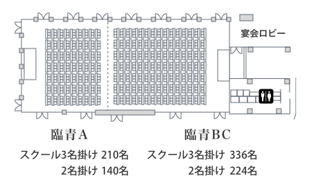 ディナー(着席形式)・レセプション(立食形式)・シアター(椅子のみ)